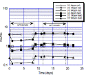 течение 2 дней, затем следуюющий цикл на протяжении 168 часов при 20°C и 10%