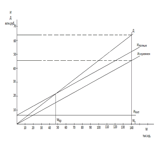 используя графический метод. Построим график безубыточности инвестиционного
