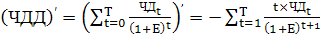 частная производная ЧДД по ставке процента Е - (ЧДД)'