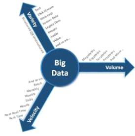 · Объем. Стремительное развитие технологий и популяризация социальных сетей способствуют очень быстрому росту объемов данных. Эти данные, генерируемые как людьми, так и машинами распространяются в различных местах и форматах в огромных объемах.