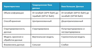 Ниже в рисунке 2 находится сравнительная характеристика традиционной базы и базы Big Data.