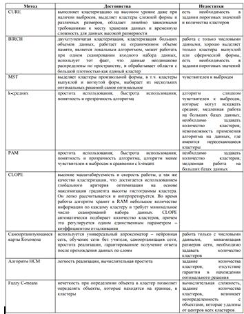 В таблице перечислены достоинства и недостатки таких методов, как: