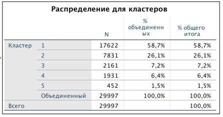 почти 59% (17 622 торговые точки) от всех кластеров. Наименьший по размеру 5