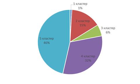 увидеть на рисунке снизу. Самым большим кластером является первый, он составляет