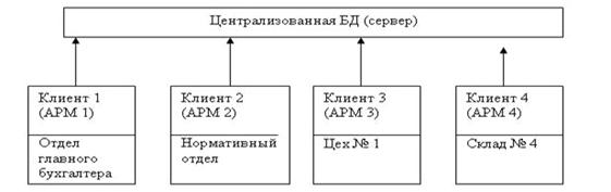 Клиент-серверная СУБД располагается на сервере вместе с БД и осуществляет доступ к БД непосредственно, в монопольном режиме. Все клиентские запросы на обработку данных обрабатываются клиент-серверной СУБД централизованно.