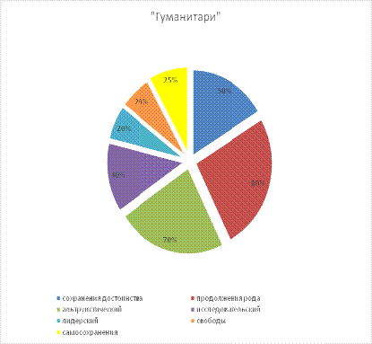 На рис. 2. представлены результаты исследования доминирующих инстинктов "гуманитариев". Как можно заметить по схеме больший процент приходится на инстинкты: