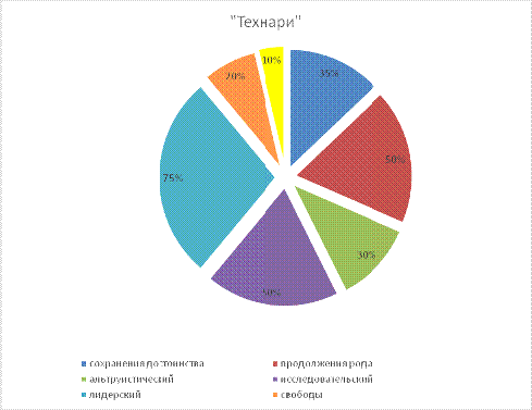 На рис. 3. Представлены результаты исследования доминирующих инстинктов "технарей". Здесь можно пронаблюдать, что большинство испытуемых обладают следующими инстинктами: