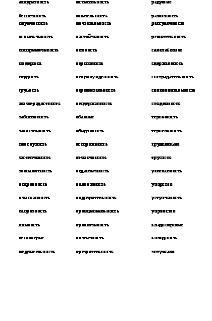 отдельные качества личности (черты характера):