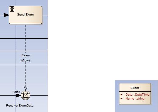 Рисунок 1. Пересылка объекта данных Exam между участниками бизнес-процесса; Рисунок 2. Класс Exam в диаграмме классов