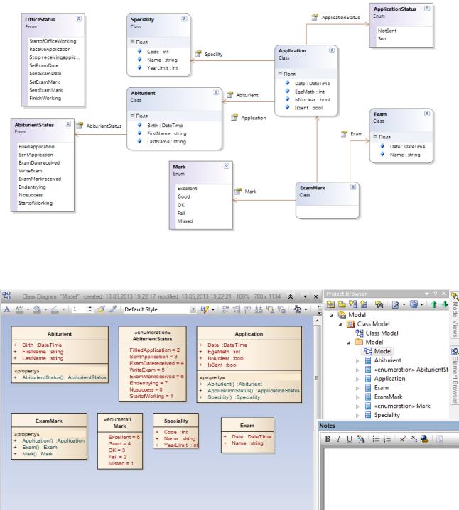 Выбор Enterprise Architect в качестве редактора диаграмм обусловлен тем, что это средство удовлетворяет сформулированным критериям (связь диаграмм бизнес-процессов и диаграмм классов и возможность экспорта в xml-формат), а также возможностью импортировать спроектированные классы в рабочую среду и возможность подключения спроектированных моделей в среду разработки Visual Studio 2010.