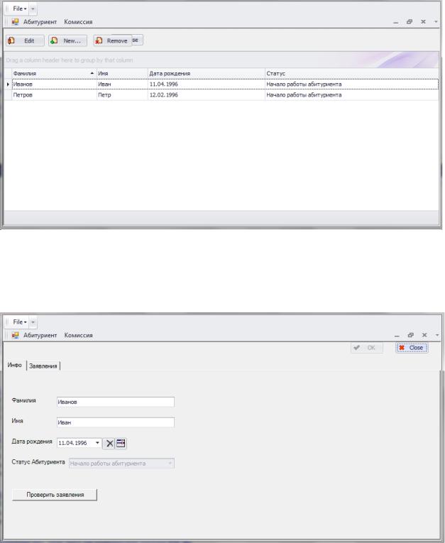 Рисунок 7. Список абитуриентов в начале работы