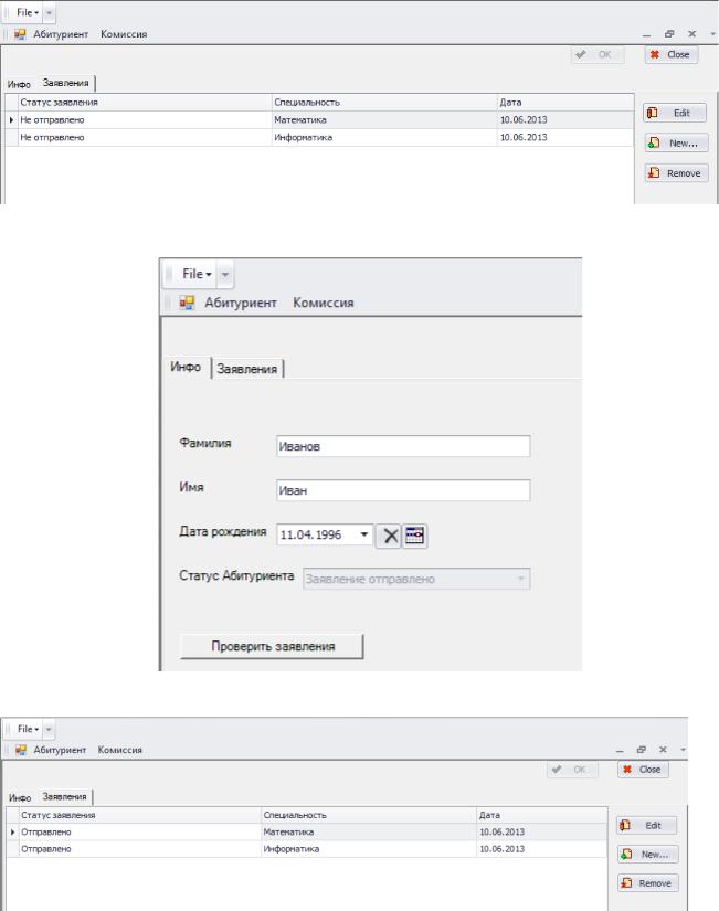 Рисунок 9. Список неотправленных заявлений абитуриента