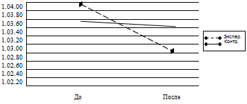 экспериментальную группу резко наклонена вниз. Следовательно, результат