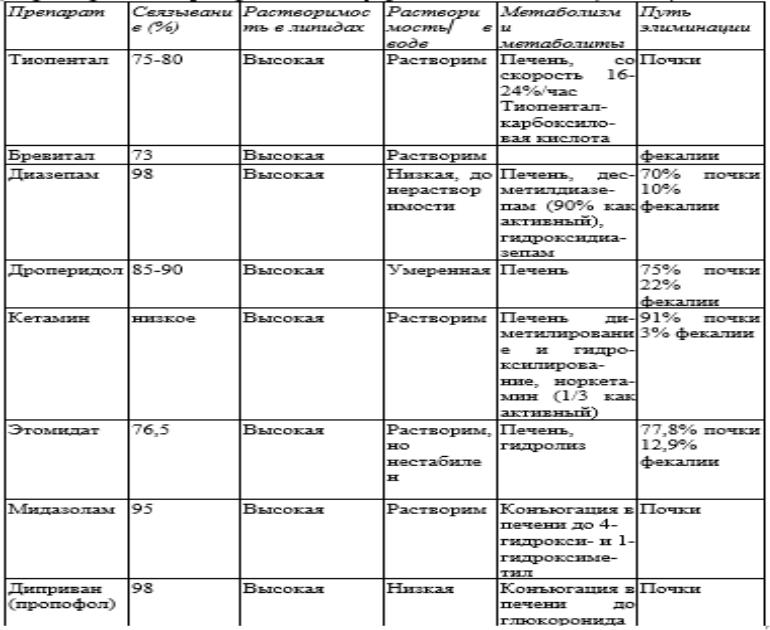 Характеристики препаратов для внутривенной анестезии