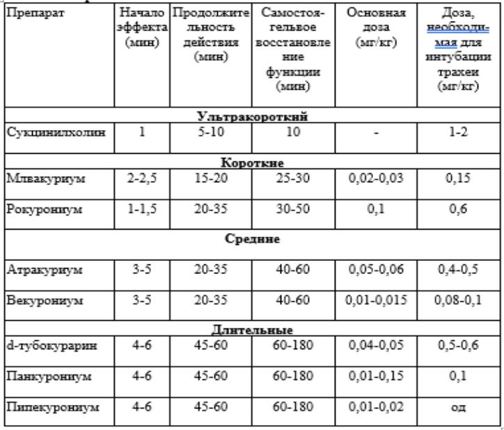 2. Миорелаксанты: длительность действия
