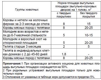 скота) приведены в табл. ниже. Площади помещений основного производственного