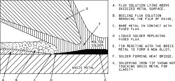 Should mechanical support for the termination be required while performing this test, such support shall be of thermally insulating material. For solder cups, the cup shall be filled with solder in accordance with 3.2, and the excess solder wicked out with a compatible fluxed solder wick. Prior to examination, flux residue shall be removed from the terminations by cleaning in a suitable solvent. Terminations shall be examined as specified in ANSI/J-STD-002.