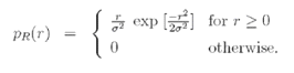 де x (t) і у (t) є так званими незалежними реальними імовірнісними процесами Гаусів. Поняття «Гауси» є наслідком того факту, що передбачається велика кількість розсіювань, а застосування центральної граничної теореми до цих випадкових розсіювачів приводить до розподілу Гауса. Середні значення величин x (t) і у (t) прагнуть до нуля, оскільки відсутній сильний компонент сигналу основного променя. Математично, якщо ми маємо дві незалежних і тотожно розподілених випадкових змінних Гаусів X і Y з середнім значенням рівним 0 і змінну, тоді R = pX2 + Y2 має Релєєвський розподіл з функцією щільності вірогідності, що представляється як: