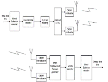 Для PHY WIMAX також можуть бути запропоновані Просторово-часові блокові коди як додатковий метод, який може бути реалізований при передачі інформації в низхідному каналі для того, щоб забезпечити підвищене розділення [4]. Схема 2 1 або 2 2 Alamouti STBC [8], яка забезпечує обидва види розділення: - розділення в часі і просторове розділення, також може бути здійснена. Для того, щоб в першу чергу скористатися перевагами розділення на прийомі, при якому немає необхідності в додатковій передаваній потужності, застосовують обидві схеми розділення.
