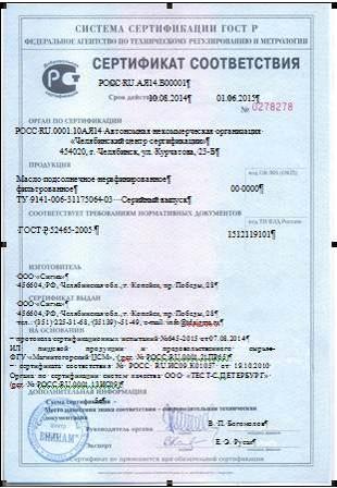 на сертификацию масла подсолнечного нерафинированного фильтрованного