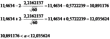 . Результаты вычисления интервальных оценок для математического ожидания и дисперсии
