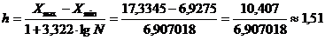 Интервал [6,9275; 17,3345], содержащий все элементы выборки, разбиваем на частичные интервалы, используя при этом формулу Стерджеса для определения оптимальной длины и границ этих частичных интервалов.