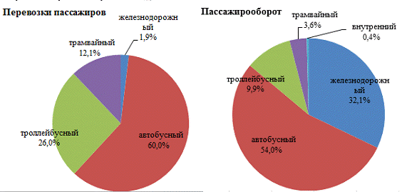 структура перевозок пассажиров и пассажирооборота транспорта общего пользования