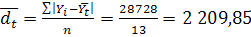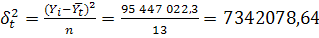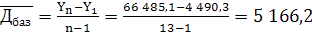 Как видно из таблицы, объём платных услуг населению в г. Уфа ежегодно изменяется: с 2000 г. по 2012 г. он существенно увеличился, а именно, на 61 994,8 млн. руб. В 2012 году объём платных услуг увеличился на 11,43%% по сравнению с 2011 г. Однако следует заметить, что темп прироста в 2012 году несколько меньше, чем было в 2011 году, когда объём платных услуг увеличился на 11,75%, и в предыдущих годах, что свидетельствует о снижении темпов прироста объёма платных услуг населению. Исходные уровни ряда динамики и его относительные показатели, как видно из таблицы, изменяются по периодам времени. Для получения обобщённого типического их уровня за весь изучаемый промежуток времени (за 2000-2012 гг.) рассчитаем средние уровни и таким образом абстрагируемся от случайных колебаний. Средний абсолютный прирост:
