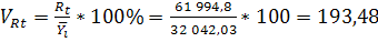 Коэффициенты чистой регрессии свидетельствуют о том, что при увеличении среднемесячной заработной платой работников по г. Уфа на 1 руб., уровень потребления платных услуг населением увеличивается на 3,589 млн. руб. при увеличении численности населения на 1 тыс. человек, уровень потребления платных услуг населением на 0,019 млрд. руб. при условии, что остальные факторы остаются постоянными. Рассчитаны коэффициенты вариации для оценки