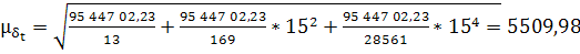 Таким образом, вариация факторов, включенных в модель не превышает допустимых значений 33-35%. Для проведения прогнозирования объема потребления платных услуг населением г. Уфы на будущее, необходимо по отобранной функции в качестве тренда (п.3) определить показатели колеблемости ряда динамики. Вспомогательные расчеты представлены в таблице