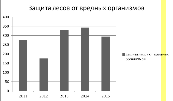 Из полученных данных о динамики защиты лесов от вредных организмов в Российской Федерации за 2011-2015 гг. можно сделать следующие выводы: