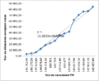 млн. человек (X), для этого подставим число в уравнение линии тренда.