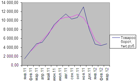 Таблица 16 - Анализ динамического ряда «обороты» с октября 2010 - март 2012 гг.
