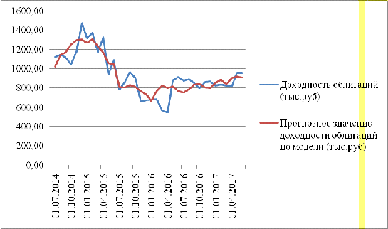 Рисунок 2 -Доходность облигаций и прогнозные значения по модели