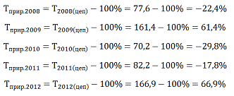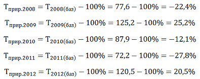 уровня ряда динамики к предыдущему, умноженному на сто. (Темп прироста