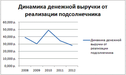 Так, средняя величина денежной выручки за реализацию подсолнечника за 6 лет в период с 2003 по 2008 годы составила:
