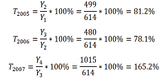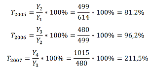 колебания. Так, темп роста в 2006 году составил 78.1%, а в 2007 уже 165.2%, то