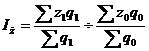 где q0 и q1 - количество реализованной продукции отчетного и базисного года.