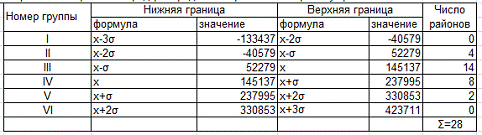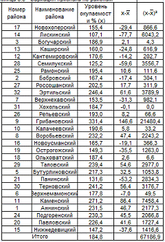 Таблица 3.2 Интервальный ряд распределения районов Воронежской