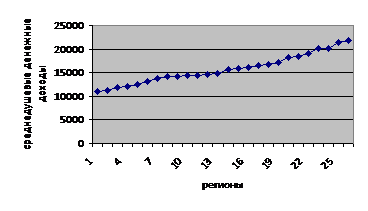 признака выступают среднедушевые денежные доходы (табл. 1).
