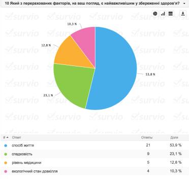 10. Який з перерахованих факторів, на ваш погляд, є найважливішим у збереженні здоров’я?