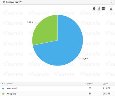 соціологічного дослідження було опитано 39 осіб. Серед них 28 особи (71,8%) -