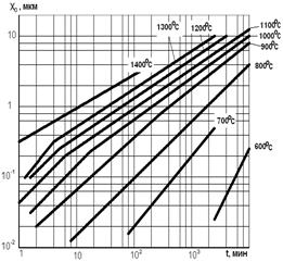Как следует из рисунка 2,б, окисел толщиной 1 мкм при температуре до 1300 оС получается за 1 час, при снижении температуры до 1000 оС время увеличивается до 4 часов.
