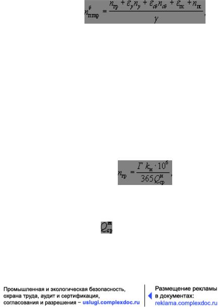 где nгр - заданное число грузовых поездов (без ускоренных и сборных) в средние сутки месяца максимальных перевозок; пу - заданное число ускоренных грузовых поездов; nсб - заданное число сборных поездов; nпс - заданное число пассажирских поездов; eу, eсб, eпс - коэффициенты съема грузовых поездов соответственно ускоренным, сборным и пассажирским поездом*; g - допустимый коэффициент использования пропускной способности для компенсации внутрисуточных колебаний размеров движения и эксплуатационных отказов в работе.