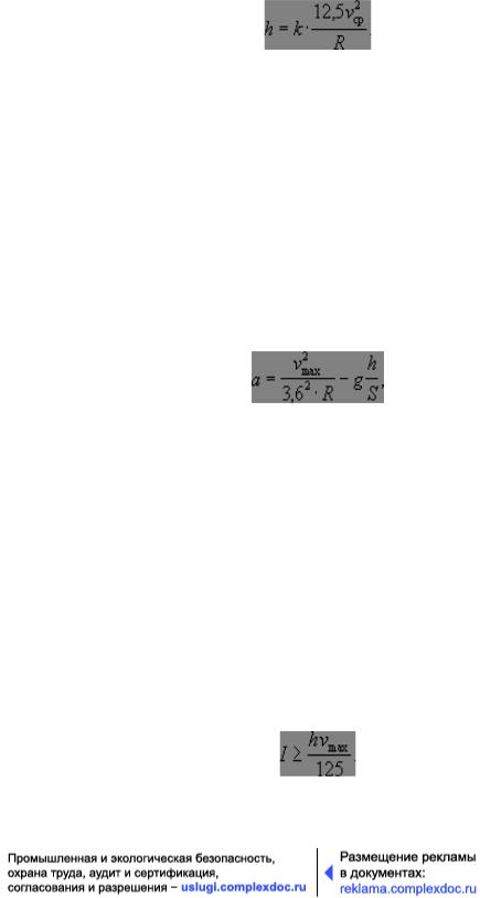 где vmax - скорость движения, км/ч, наиболее быстроходного поезда в данной кривой; h - возвышение наружного рельса, мм, определяемое по формуле: