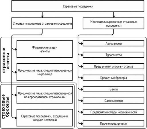В качестве связующего звена между страхователем и страховщиком на страховом рынке могут действовать страховые агенты и страховые брокеры, которые занимаются продвижением страховых услуг как товара от страховщика к страхователю. В организационном отношении страховые посредники могут функционировать как товарищества или частные предприниматели. Иногда агенты выступают как служащие страховых компаний или их доверенные лица по договору поручительства. Страховые посредники - это лица, которые находятся ближе к страхователям и оперативнее реагируют на изменение рыночной конъюнктуры страховых услуг. Деятельность страховых брокеров и агентов обычно регулируется национальным законодательством.