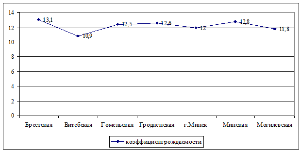 (12,6%) и Гомельской (12,5%) областях. Низкий коэффициент рождаемости -