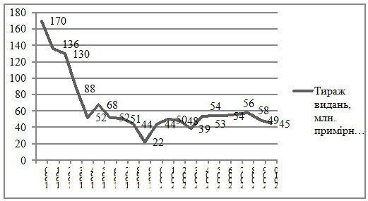 Рис. 2.2 Тенденція тиражу видань українськими видавництвами