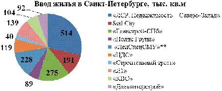 участников рынка новостроек Санкт-Петербурга по объему введенного жилья в 2015
