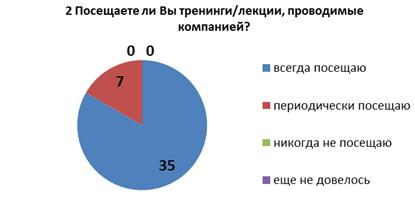 (83,3%) всегда посещают тренинги и 7 (16,6%) - периодически, то есть можно